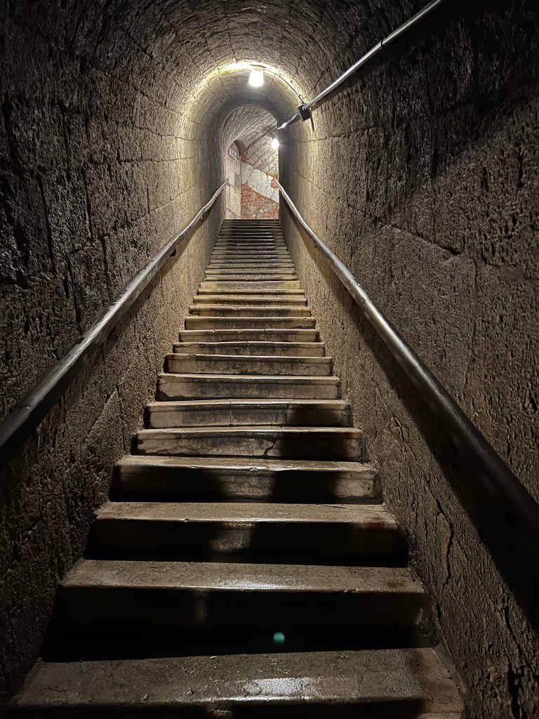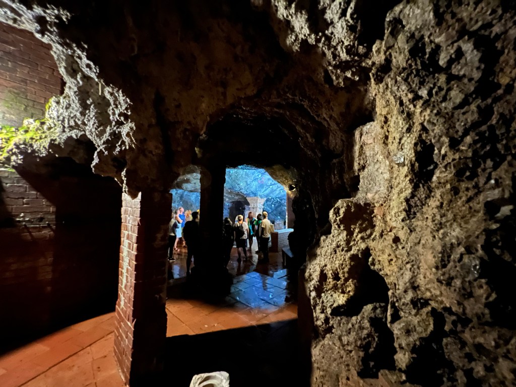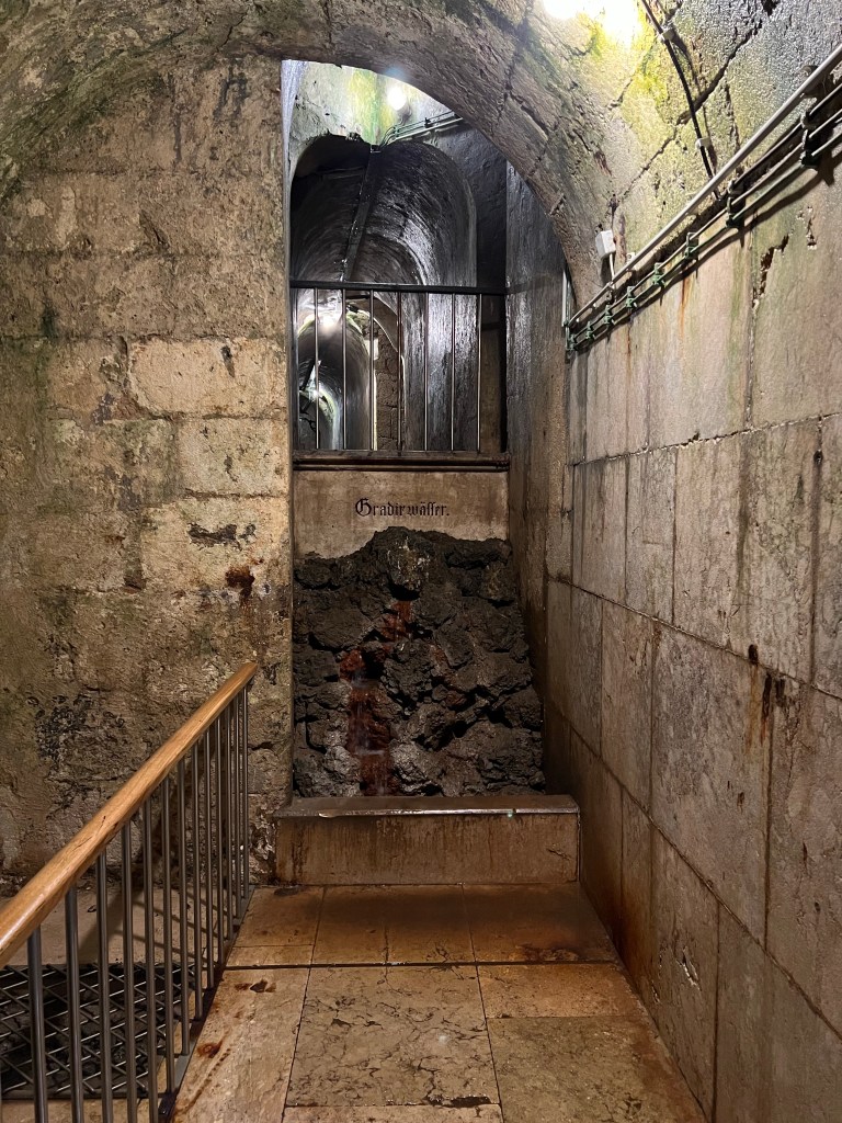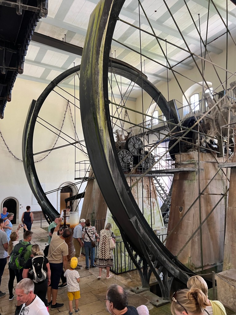 The “white gold” has been mined intensively here for hundreds of years, with evidence of salt harvesting going back to 2000 BC. The Old Salt Works hauls up brine from many springs, using two huge waterwheels 13 m in diameter, which have been continuously operating for more than 150 years. there is also an underground 2 km canal to carry off fresh water that was accidentally tapped. The temperature below ground was 12 degrees, so it was a perfect activity for a hot day.