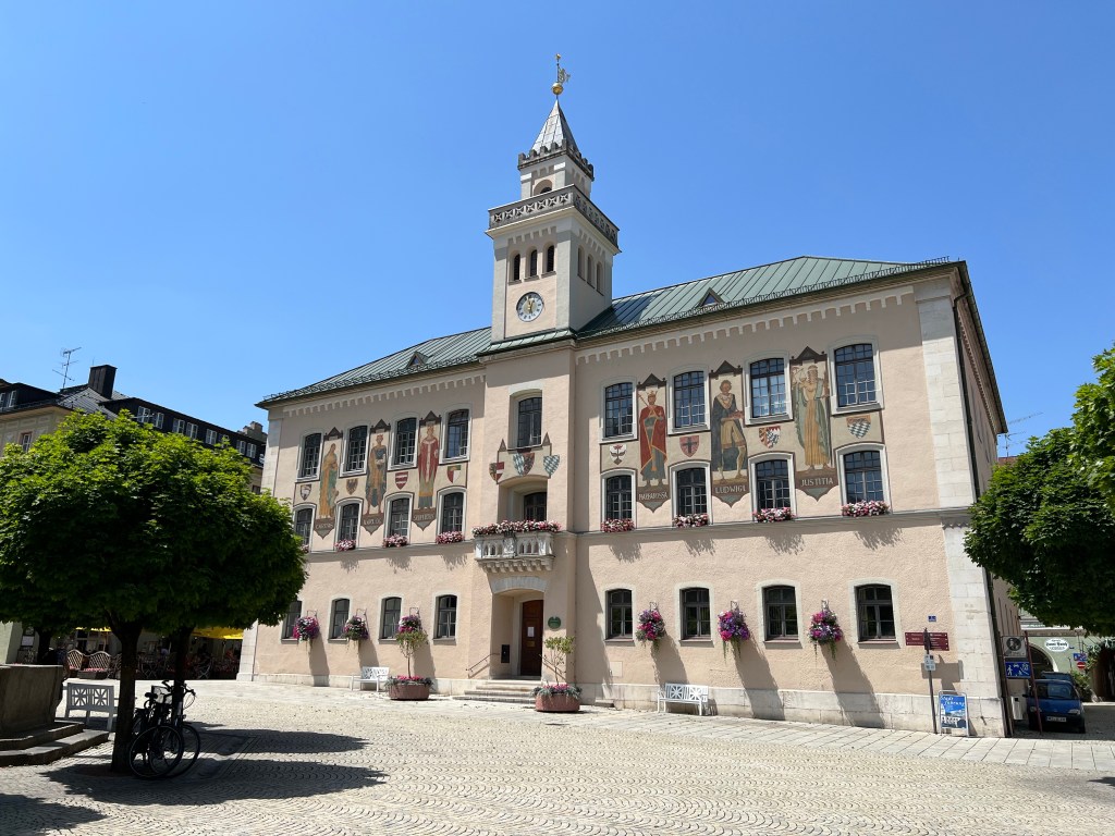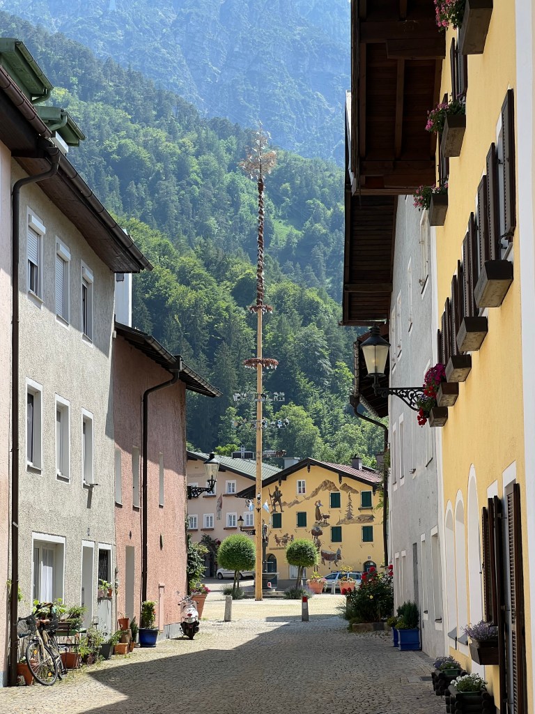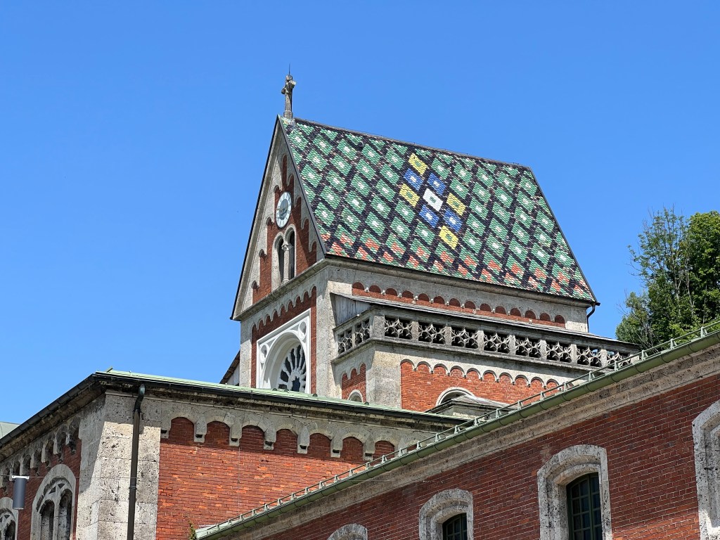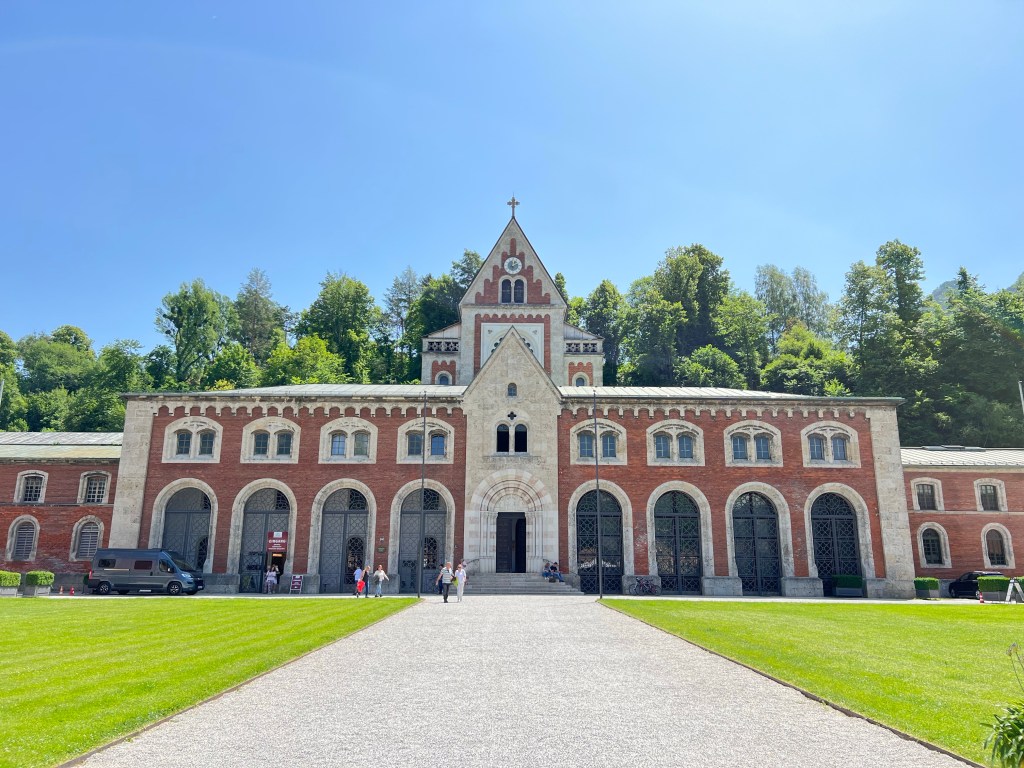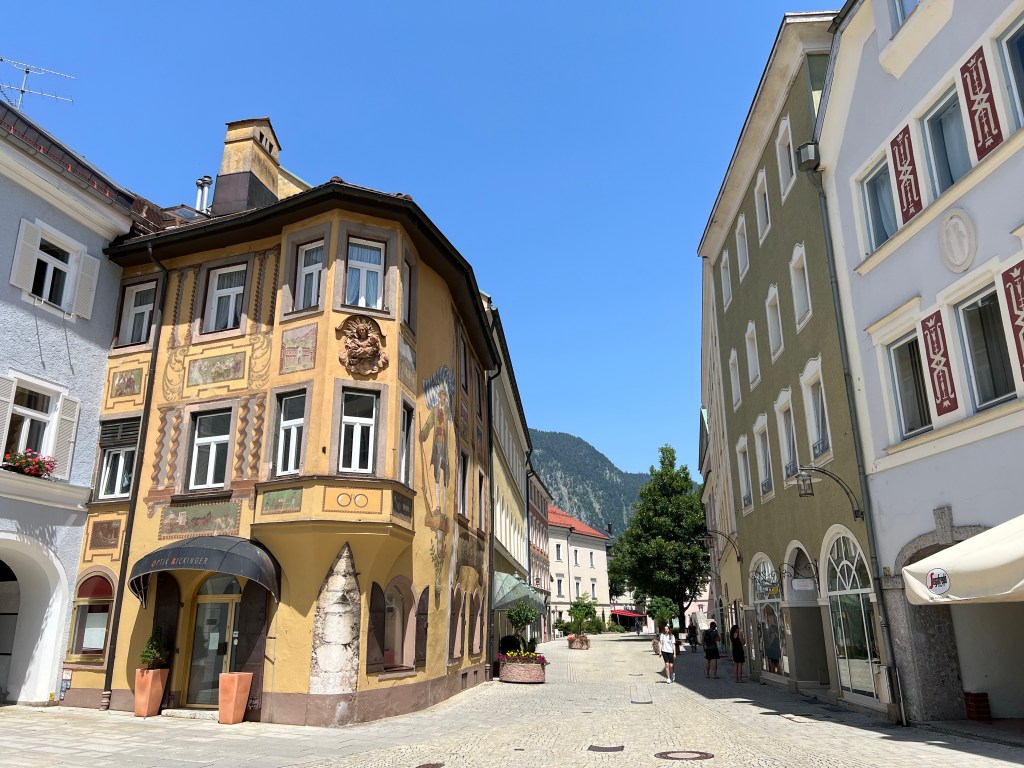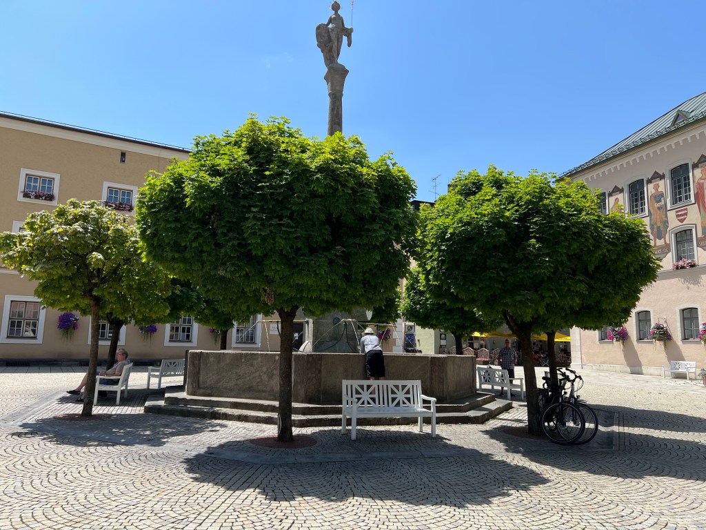 Today was forecast to be very hot, and true to forecast it hit 33 Celsius. We decided that was too hot for hiking, so we took the (air conditioned) train to Bad Reichenhall to see the Old Salt Works and wander the town.
