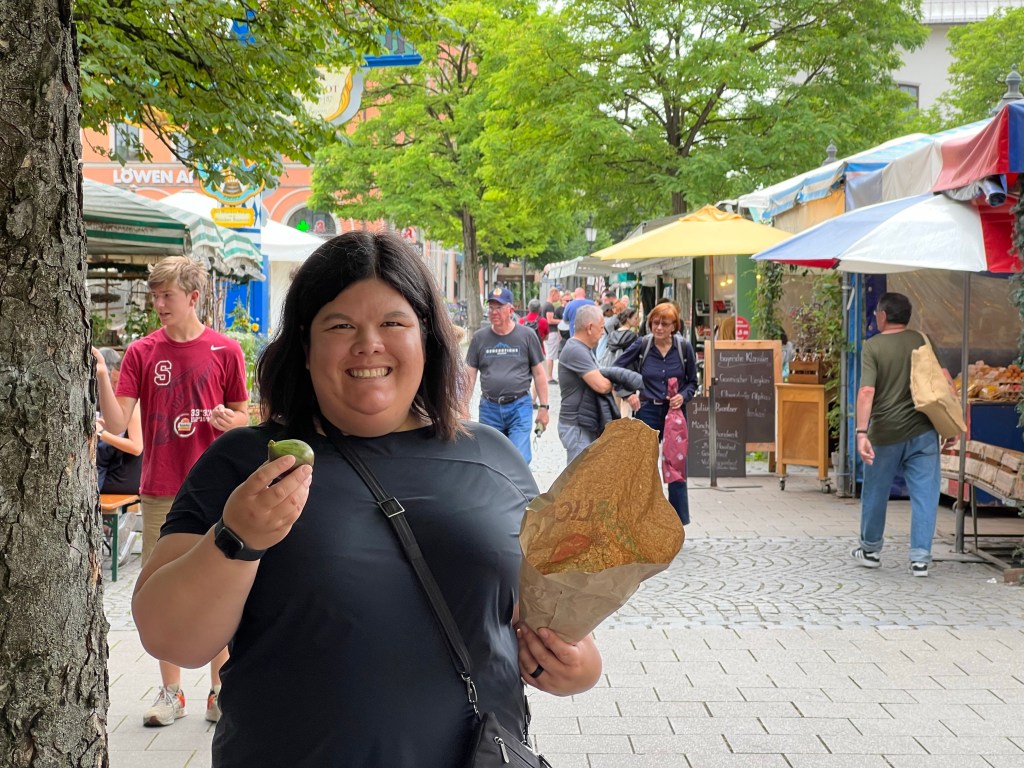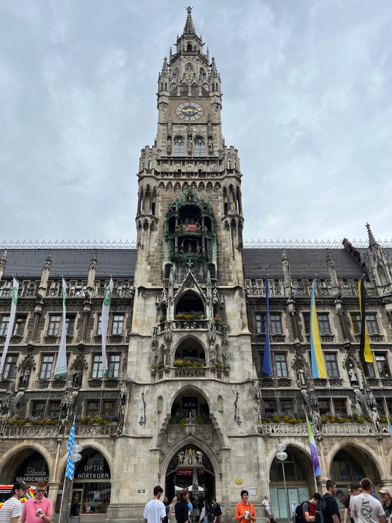 We then did a fast walking tour of town, including the outside of the Residez palace, Odeonplatz, Marianplatz and the glockenspiel at the Neue Rathaus, Viktulenmarket (where Jen bought some fresh figs), Hofbrauhaus, and finally a local grocery store for refreshments.