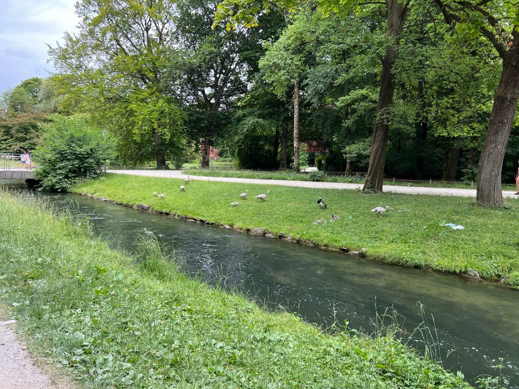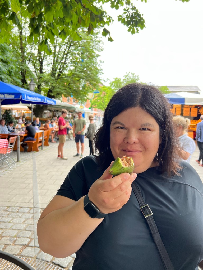 This morning we left the alpine countryside, and travelled by train to Munich. After checking in to our hotel, we went to a local dumpling shop. We both enjoyed a rice noodle, cucumber, carrot, edamame and peanut sauce to start. Then Dave had a spicy chicken dumpling, and Jen had pork, shrimp, and ginger. The former were not bad, the latter great.