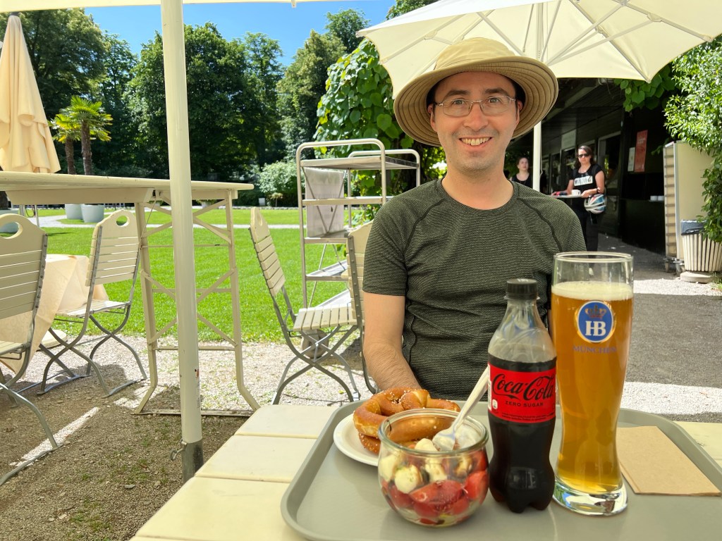 Next, we wandered some of the formal gardens before heading to the associated Milchhäus concession for pretzels, salad, and a refreshment.