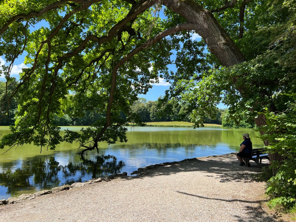 Then we hit the trails, about 6 km in all, to see the pavilions, fields, forests, pump house, and more. It was beautiful out but hot, so the shaded woody paths were our favourite.