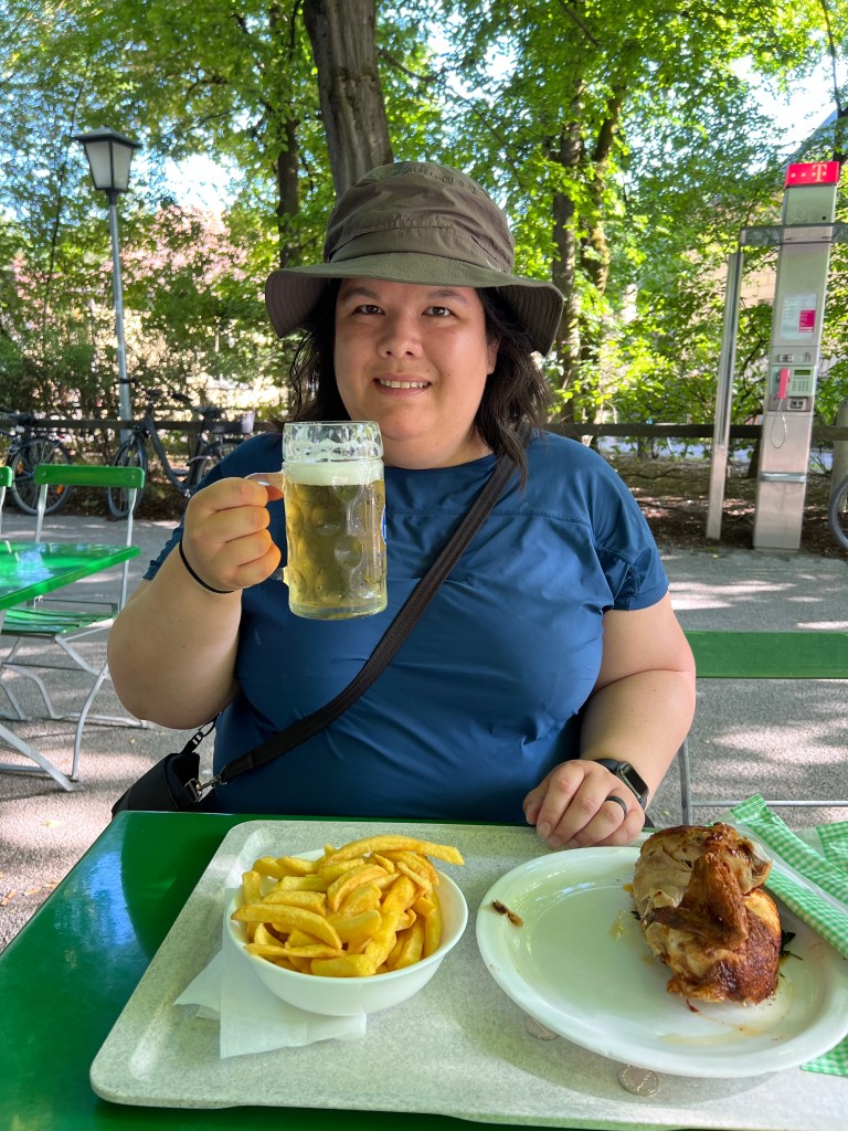 Englischer Garten was absolutely packed with swimmers, sunbathers, and pretty much the entire city. We walked along the river to the Biergarten at Chinesischen Turm, where we enjoyed cold refreshment, half a chicken, and fries.