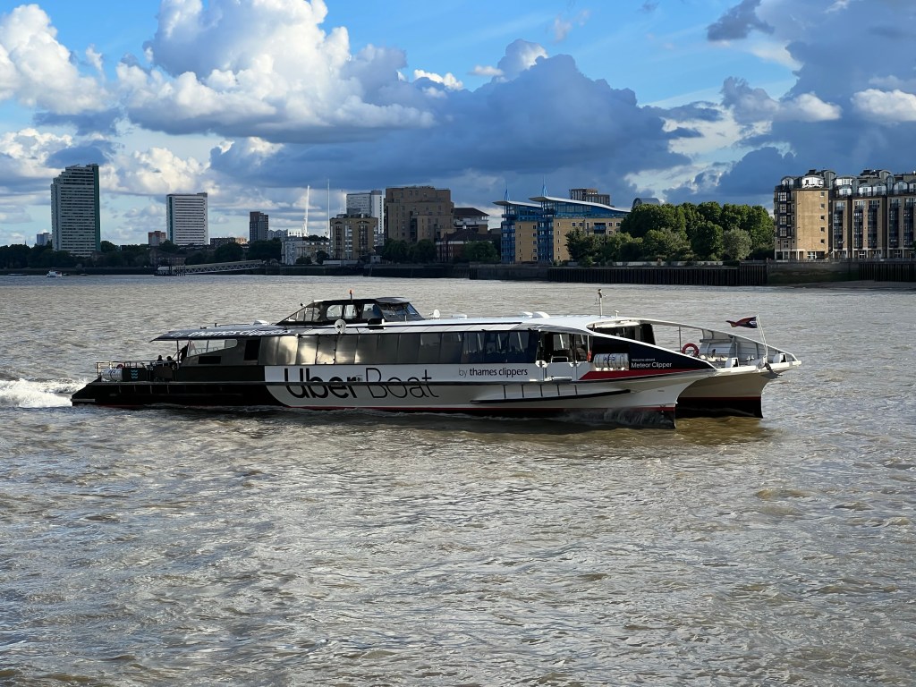 We ended up sleeping in after the long day yesterday, then taking a slow start. Finally, we made it to Vauxhall and then on board an Uber Boat, which runs up and down the Thames. We took a great, surprisingly quick, trip to Greenwich.