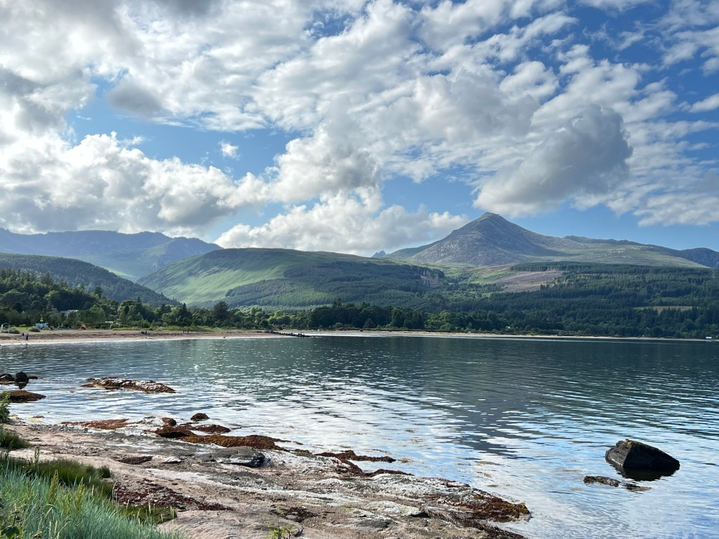 Dean, our driver, then picked us up and took us to Lochranza. We’re staying in a beautiful heritage building – a Victorian hunting lodge, to be precise, in a room with big windows to see the gorgeous valley around us. Amazing.