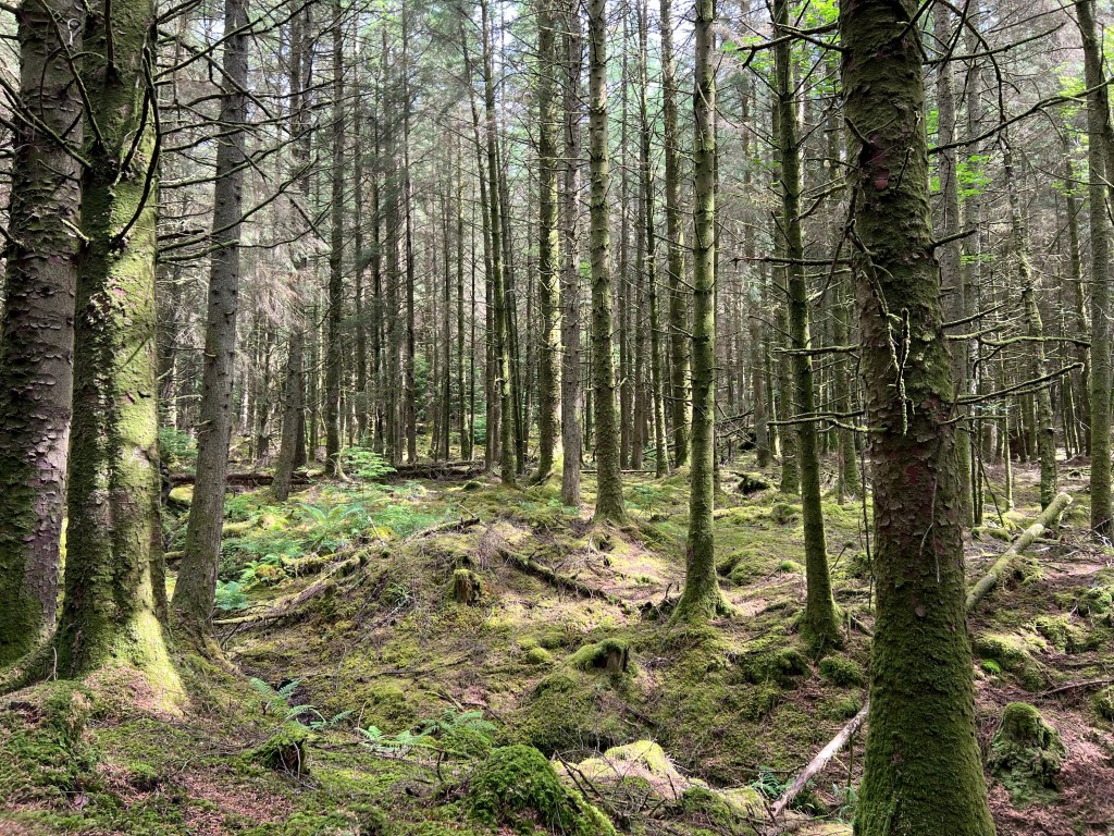 The next stage starts climbing into the woods, towards Goat Fell. It was so green and mossy – it really felt like home.
