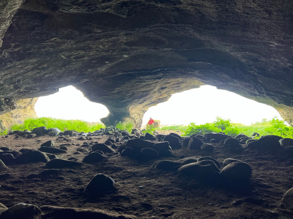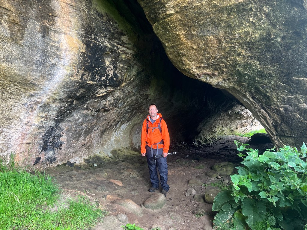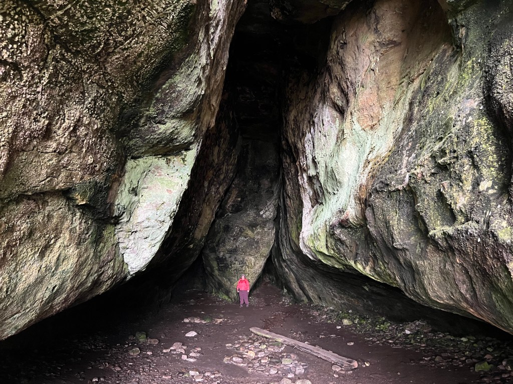After viewing the stones we retraced our steps through the moor and then down the road. King’s Cave was next on our list. Once we reached the park we spotted picnic benches, and decided it was lunch time.