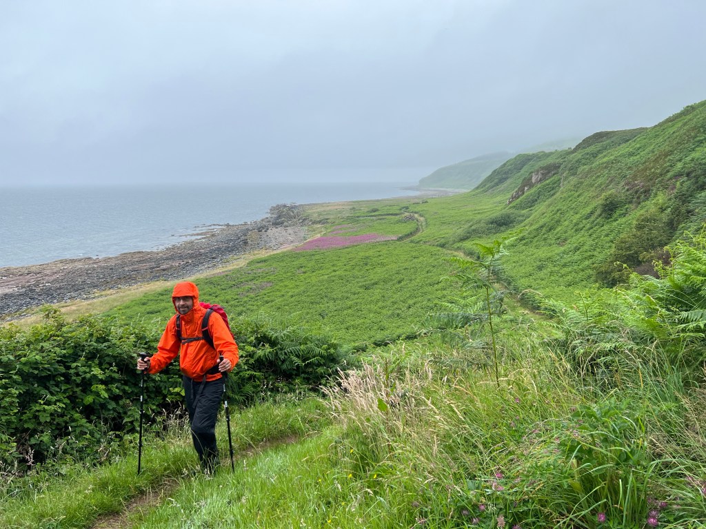 Back on the official Coastal Way trail, the actual path to King’s Cave was marvellous- wide, smooth, with forest on one side and endless views on the other. After walking through gentle hills, it was time to descend to the beach.