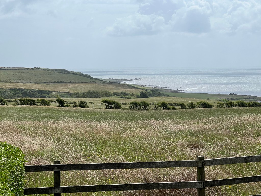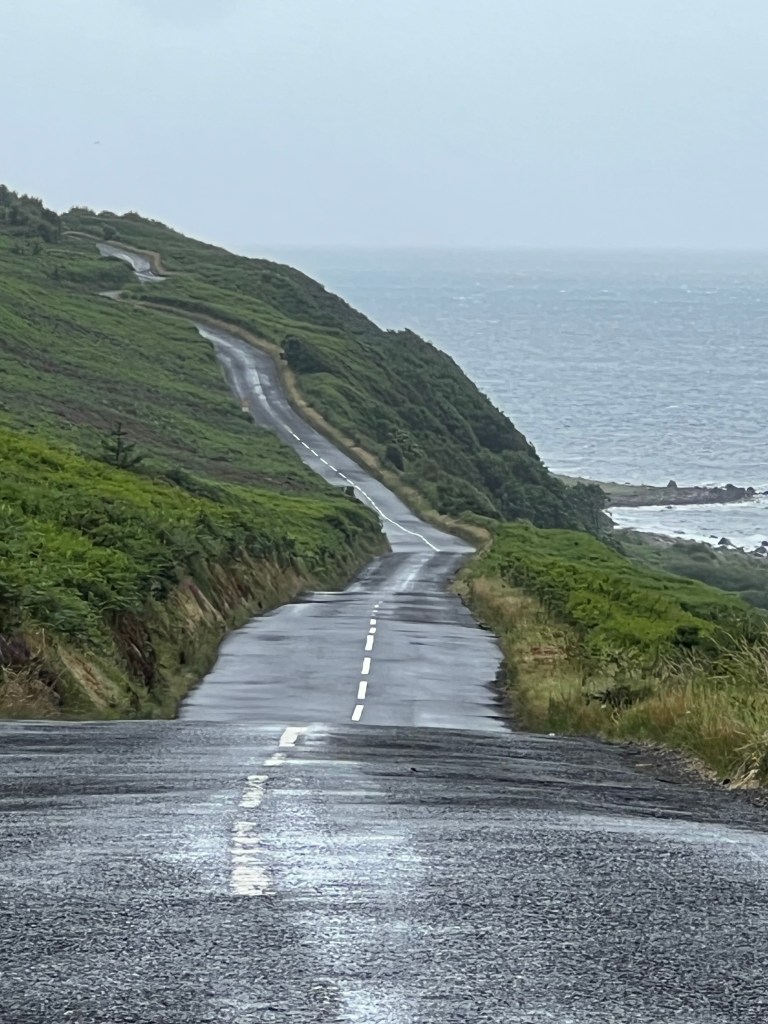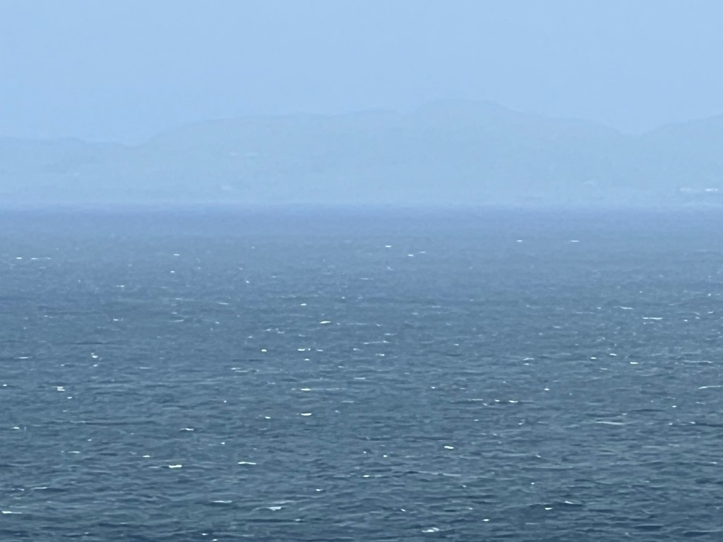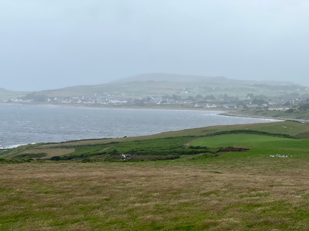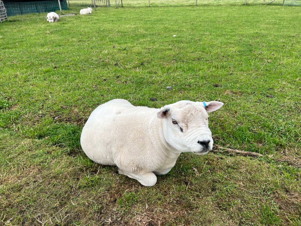 The weather was unsettled and very breezy – the ferries off island were cancelled – so it was rain suits most of the day. The inland route was very scenic, and we loved comparing the different types of sheep.
