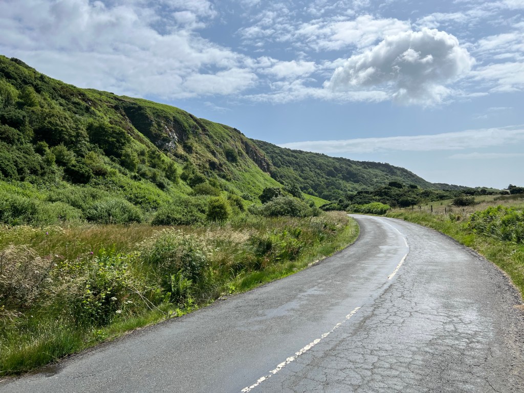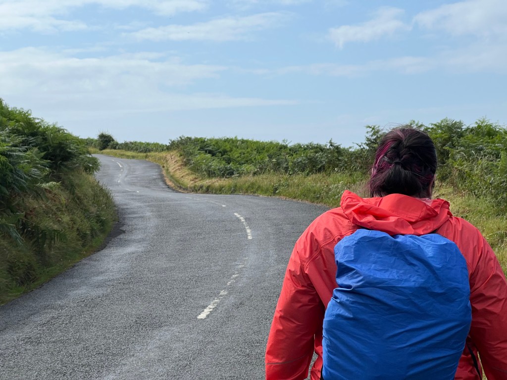 Due to a number of factors (blustery winds, local trail information, advice from our host, and a blister the size of a business card) we decided to take the cyclists route instead of the beach boulder-hopping-watch-the-tides route. This led us beachside on a secondary road, and then up onto the main road.