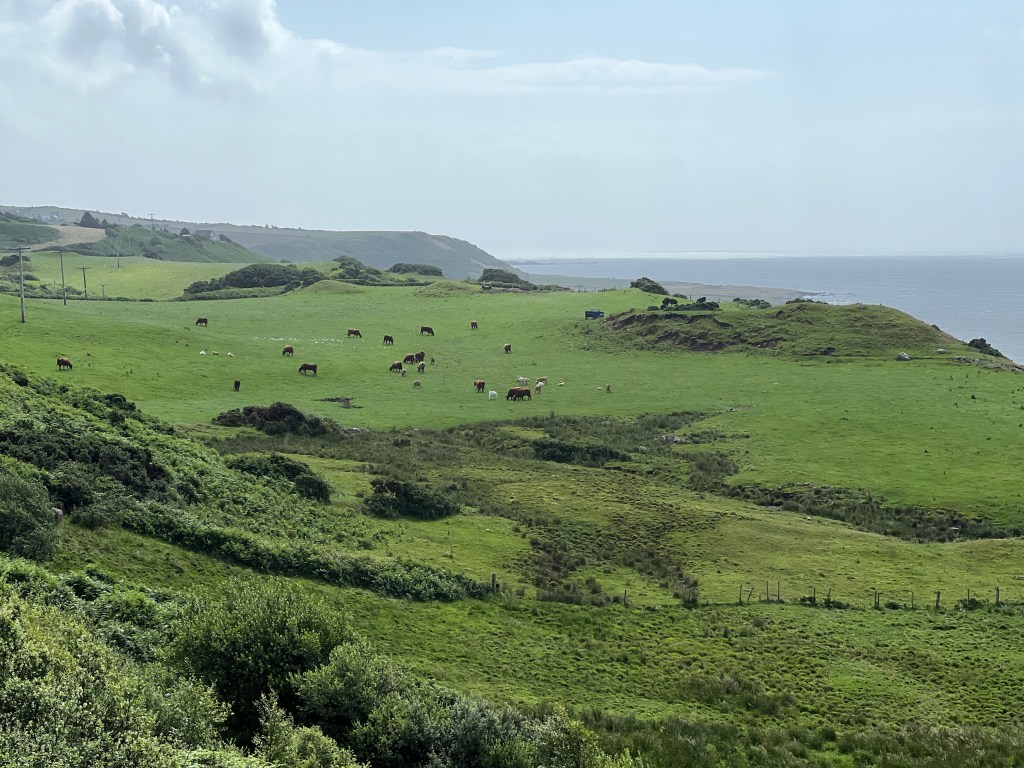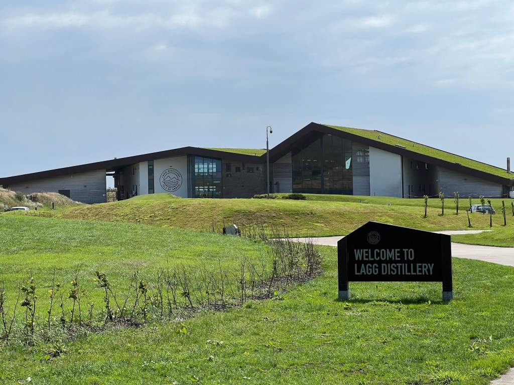 Today’s route was a bit shorter than others, so it was surprising when we came across the Lagg Distillery in good time for lunch. Delicious bagels mounded with topping in a dry, warm place with clean washrooms and a gift shop. What more could one want?