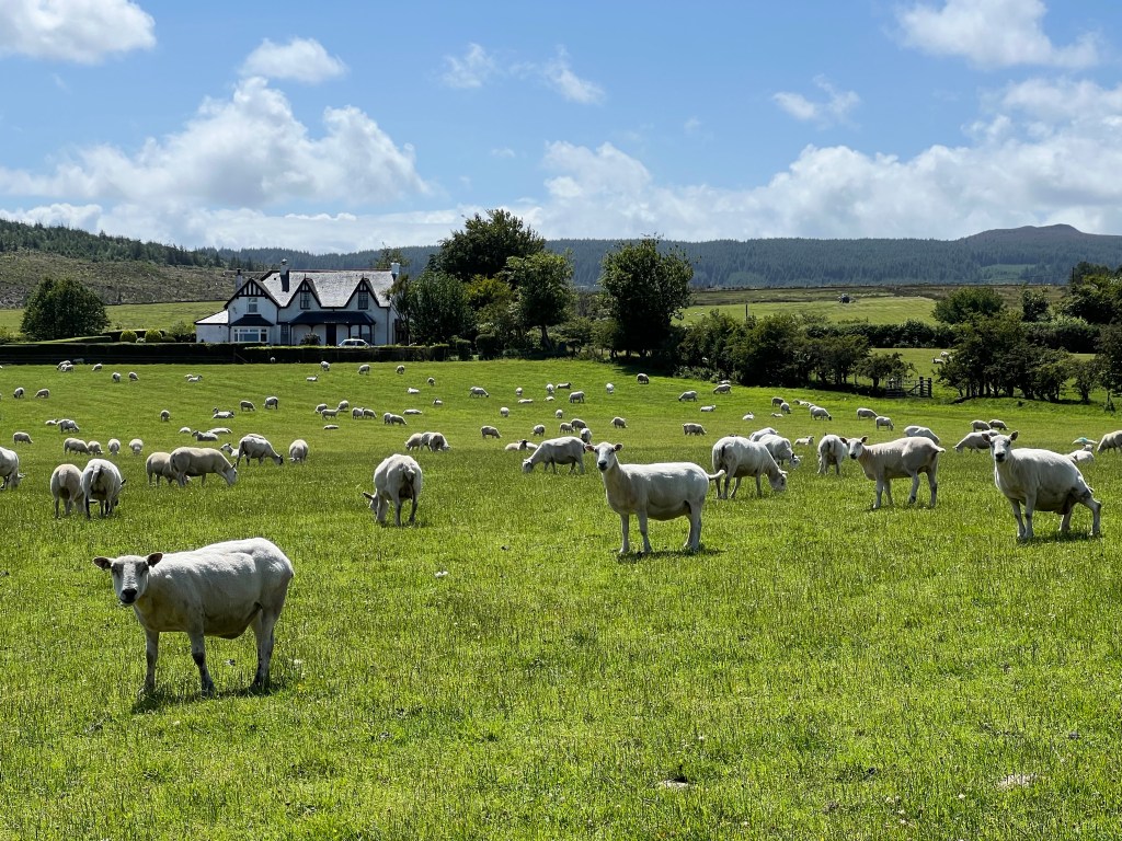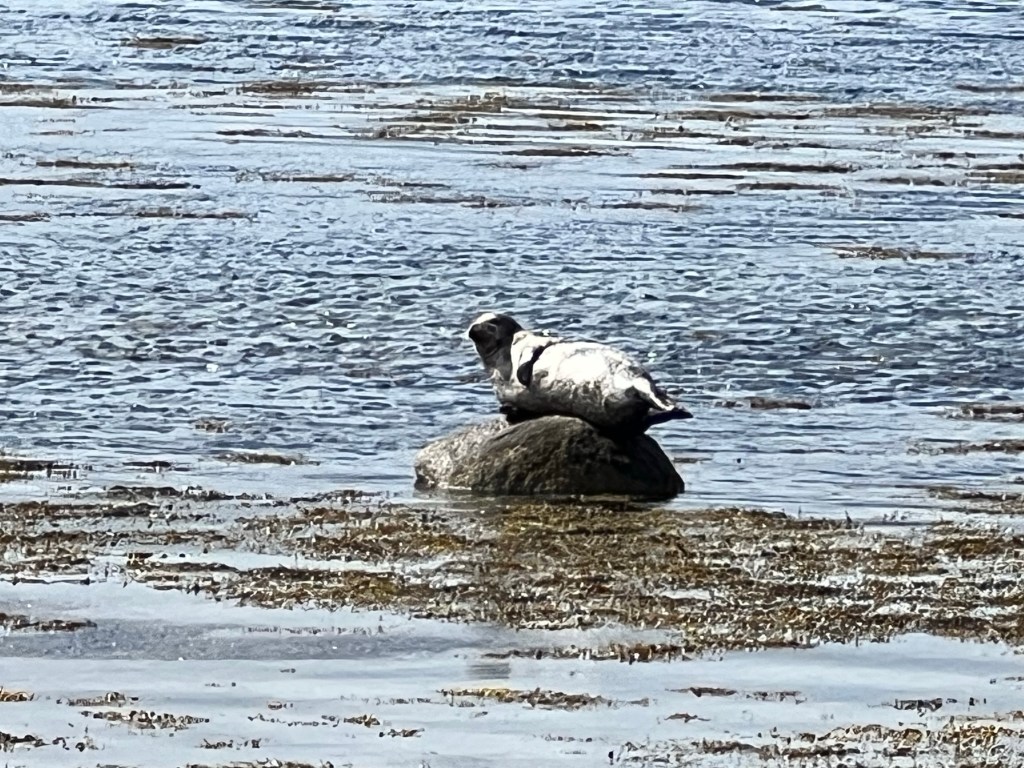 Eventually the terrain levelled out, and some tidal rock-hopping quickly brought us to a secondary roadway. After a few kilometres, we then turned off into a farmer’s field. We climbed in and out of several pastures, sticking to established paths or edges of fields, per the country’s right to wander (and per the signposts stating we should go that way)!