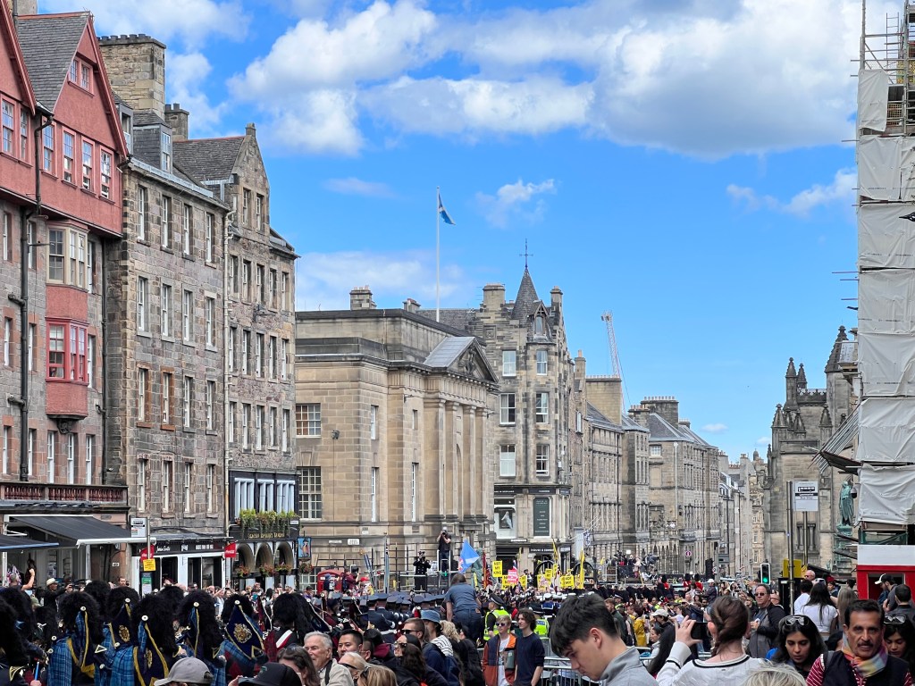 Reaching the castle, we stumbled into the end of the recessional from the Coronation celebration, as King Charles received Scotland’s honours today. The regalia was a spectacle, and Jen particularly loved the Shetland pony mascot of one of the regiments. He had his own uniform!