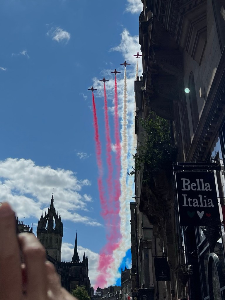 After the recessional was a fly-past by the Red Arrows, the UK’s version of the Snowbirds. They were a real crowd-pleaser.