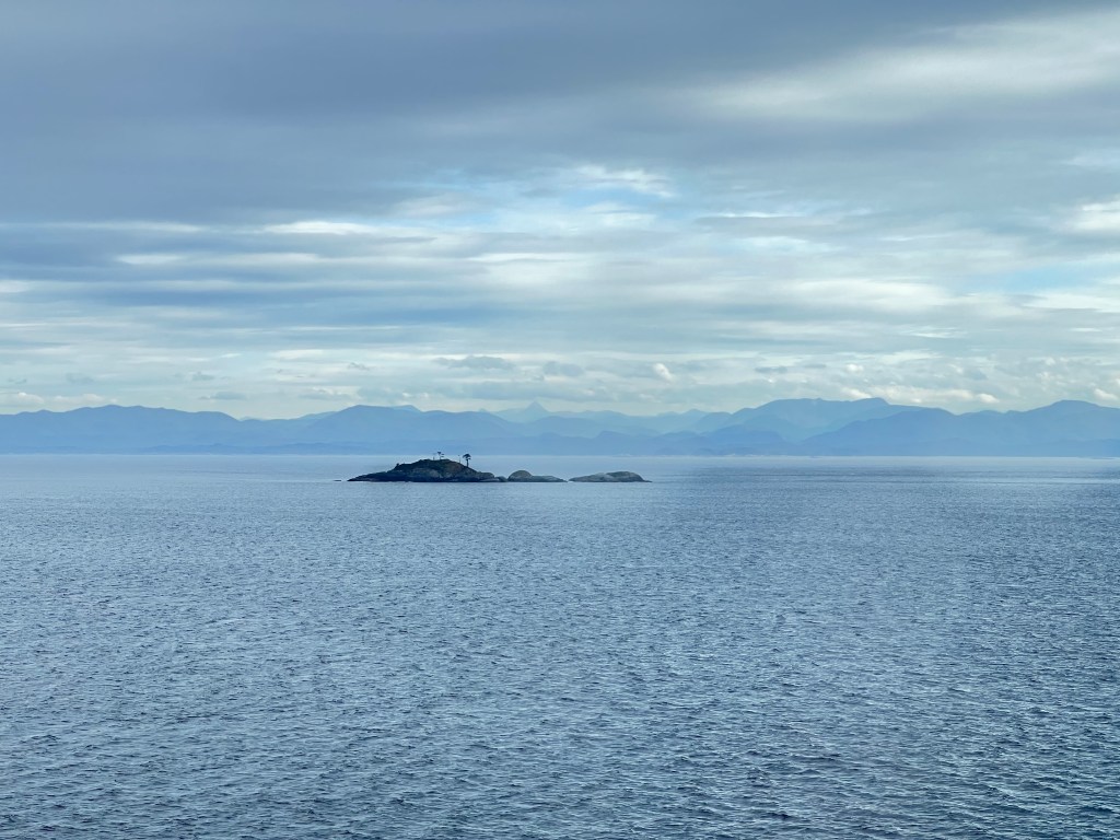 Our first sea day was cruising the inside passage, and the views were delightful. We found comfy chairs in 11 Midship to watch the world go by. Jen painted, Dave sketched: all was good.