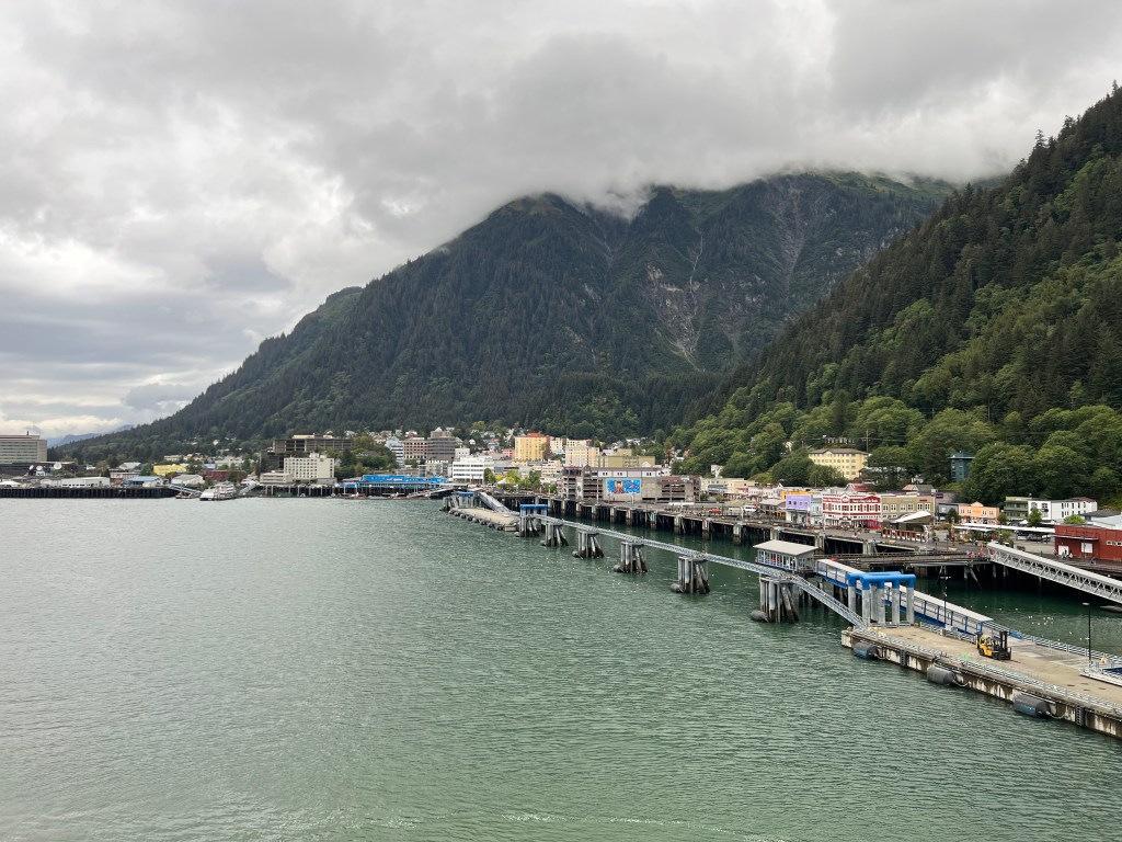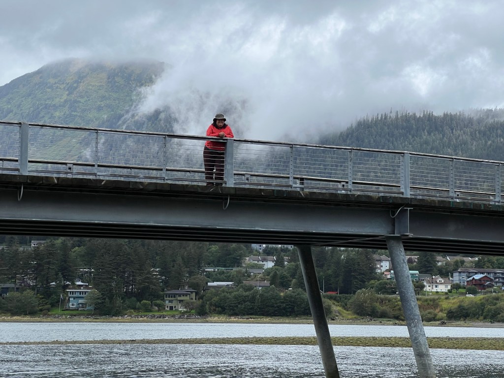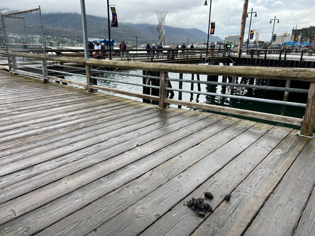 Disembarking in Juneau, we walked the waterfront, passing the tourist area as we laughed about selling the opportunity to take a photo of the big bear “present” on the dock.