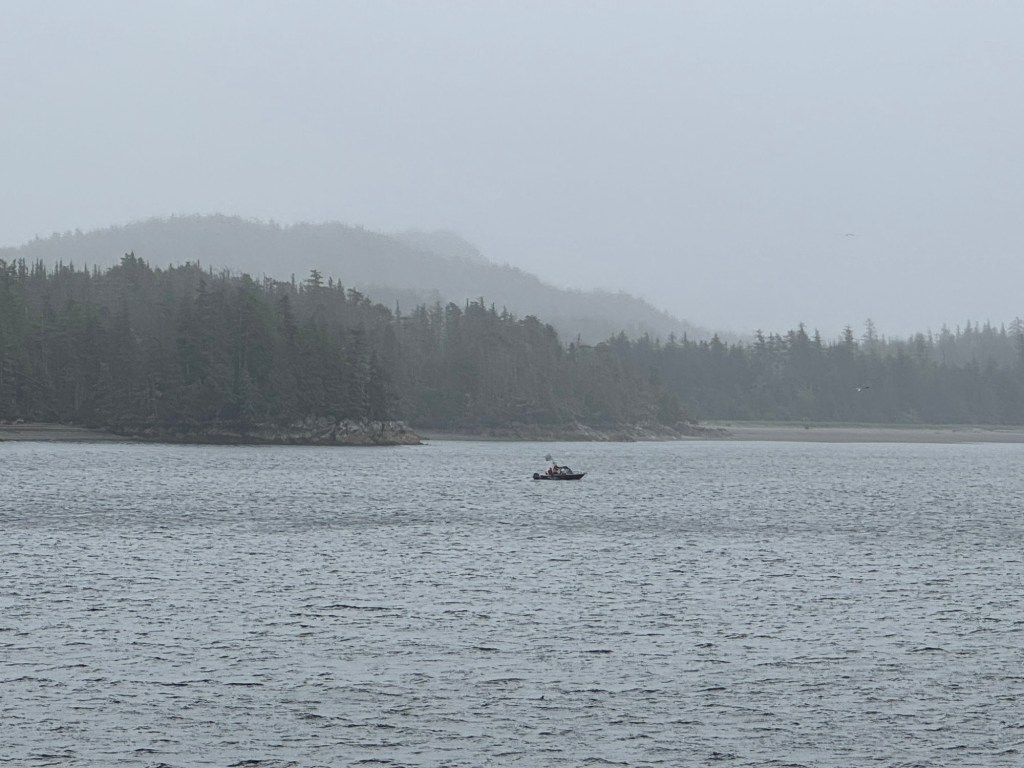 Today’s major event was the ferry ride from Prince Rupert to Skidegate (Haida Gwaii). It is entirely unlike the southern routes – arrive two hours early, ID checks to board, careful puzzle-parking of vehicles to squeeze standbys on. It’s not a RORO – you exit the way you drove in – so it’s much slower to load and unload.
