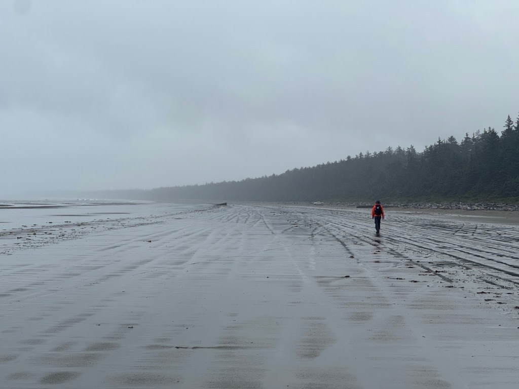 Our first stop of the day was North Beach in Naikoon Provincial Park. This sandy beach stretches for ten kilometres across the northeast of Haida Gwaii’s Graham Island, from Taaw Tlldaawee (Tow Hill) to Rose Spit. We walked about halfway, to a relatively modern shipwreck, before retracing our steps.