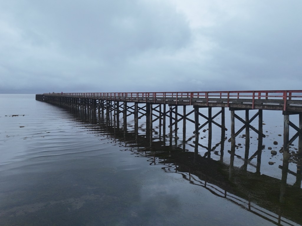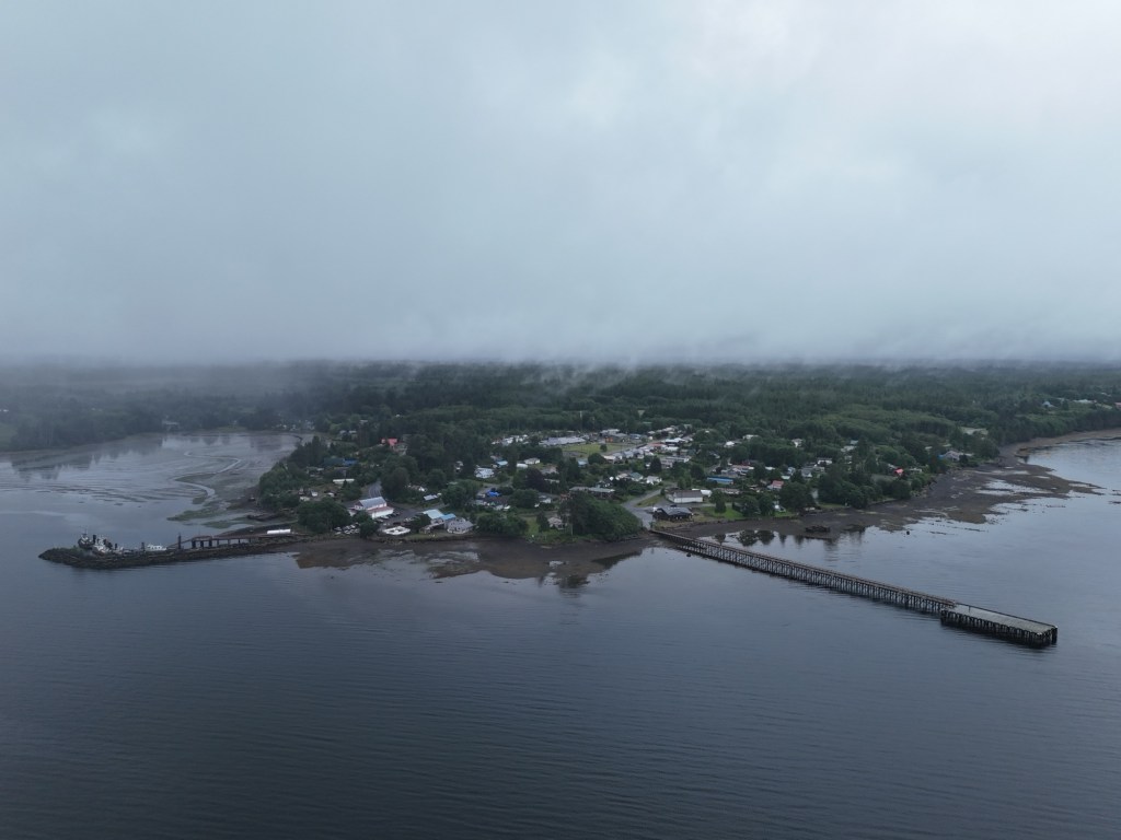 Our first stop was in Port Clements, where we drove through town and walked the Rainbow Pier. We were excited to watch a belted kingfisher – a lifer for both of us – and observed an unflappable eagle perched on a large boulder. Dave also took a short drone flight.