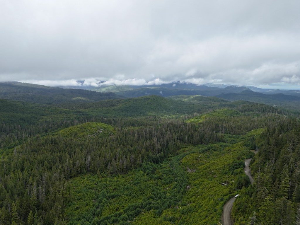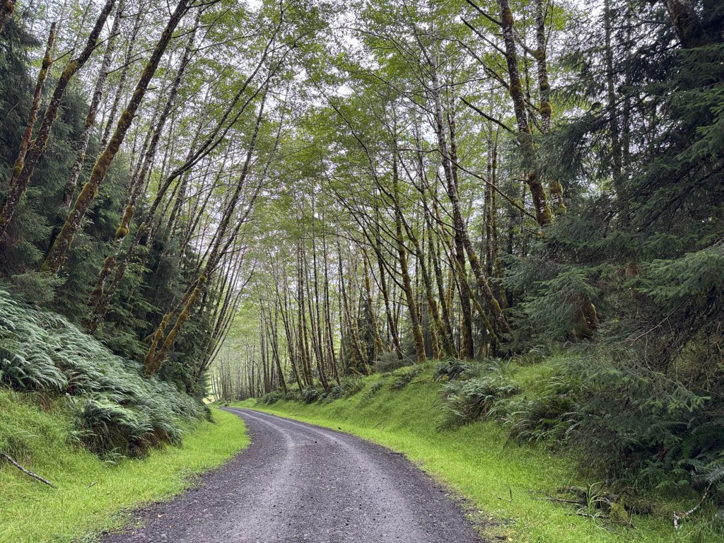 After making a quick breakfast, we hopped in the car and headed down logging roads to Rennell Sound. The road was a bit rough, but the forest was beautiful and green (outside of logging areas). This area was logged some time ago, so the only traffic was other recreation users, and the logged areas were filled with young growth.