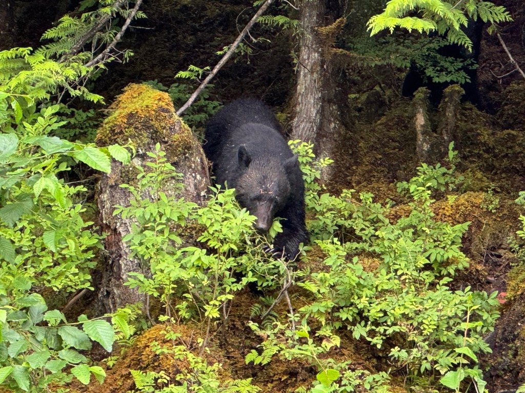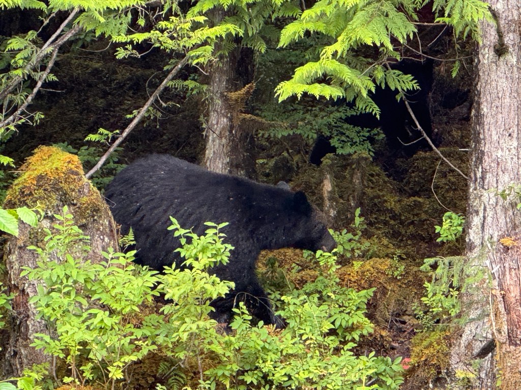 On the way back to town we saw two Taan! A mother and cub. Taan are a subspecies of black bear unique to Haida Gwaii. They are big – the biggest black bear in North America- with large jaws adapted to intertidal foraging.