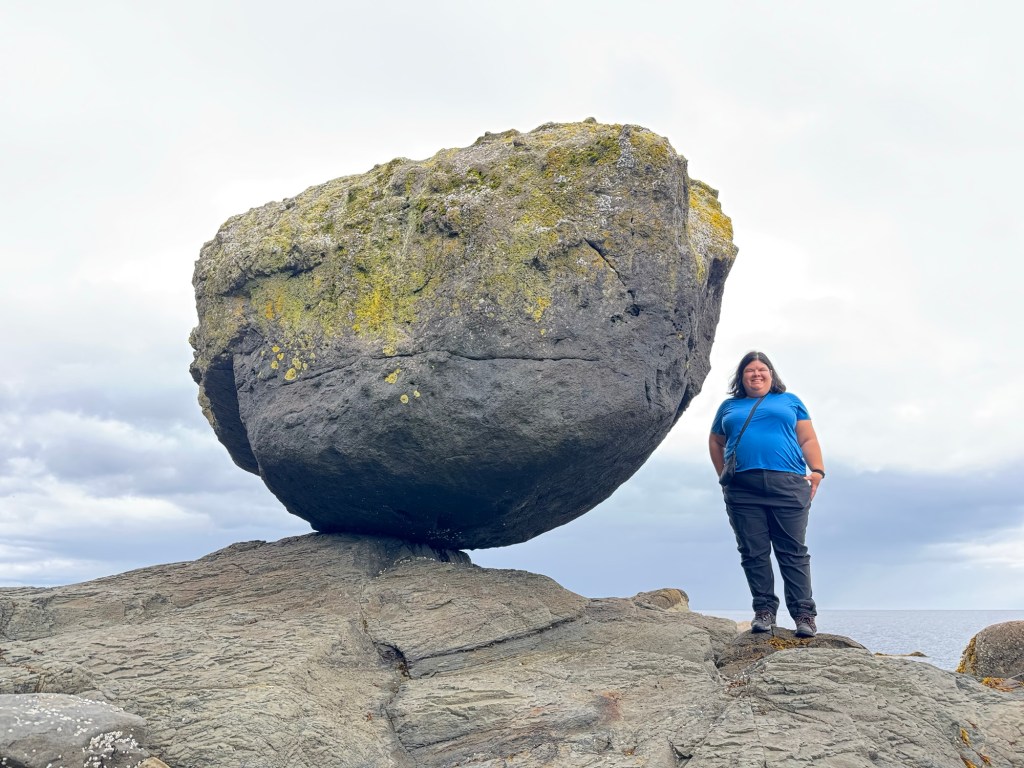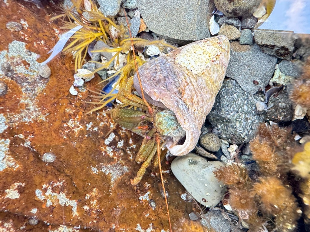 The penultimate stop of the day was Balancing Rock, which (strangely enough) is a large rock that appears to be balancing. The tide was mostly in, but Dave still found a limpet and a hermit crab in amongst the rock kelp.