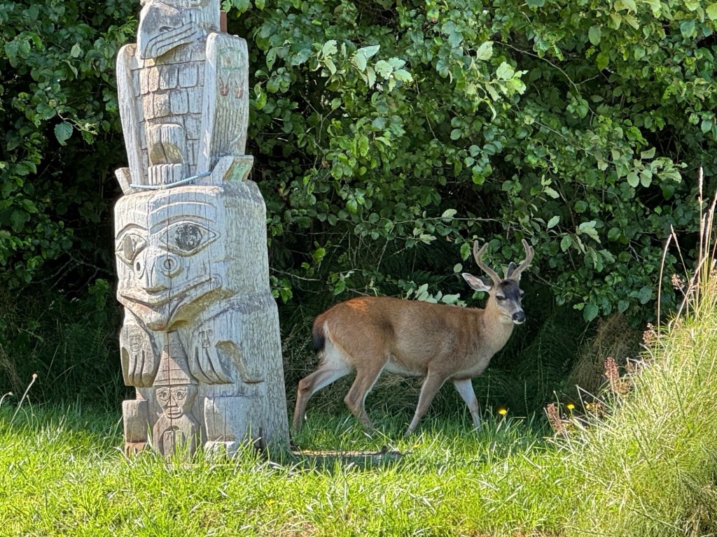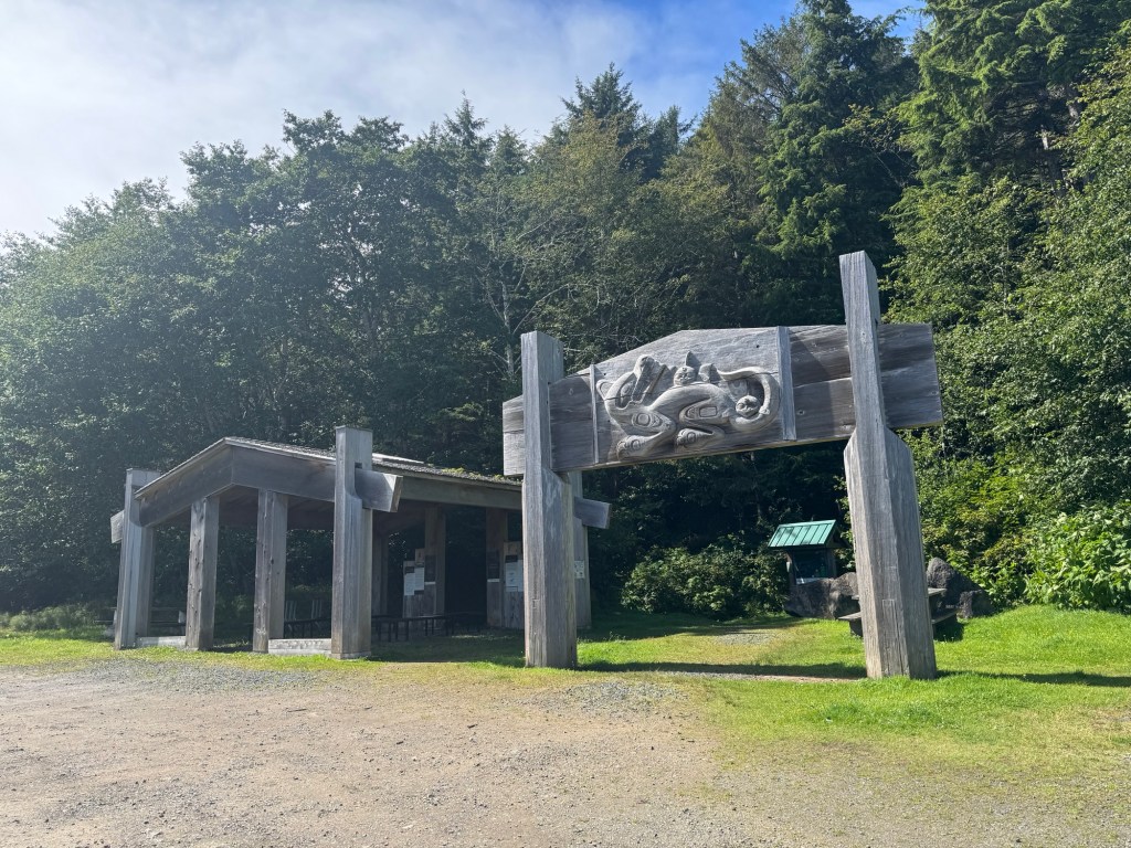 In addition to information about the plants along the trail and their traditional uses, a sign shared the story of Waasguu, who lived at Spirit Lake and hunted orcas and villagers, and about how Sacred One Standing and Moving killed Waasguu and healed his brothers.