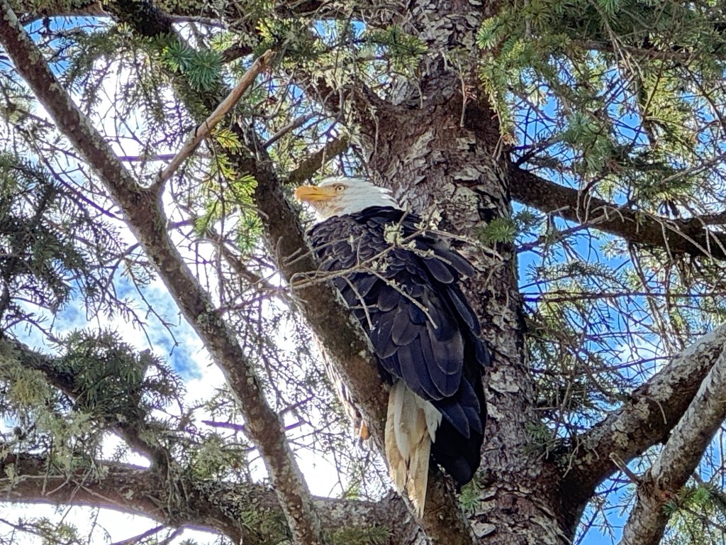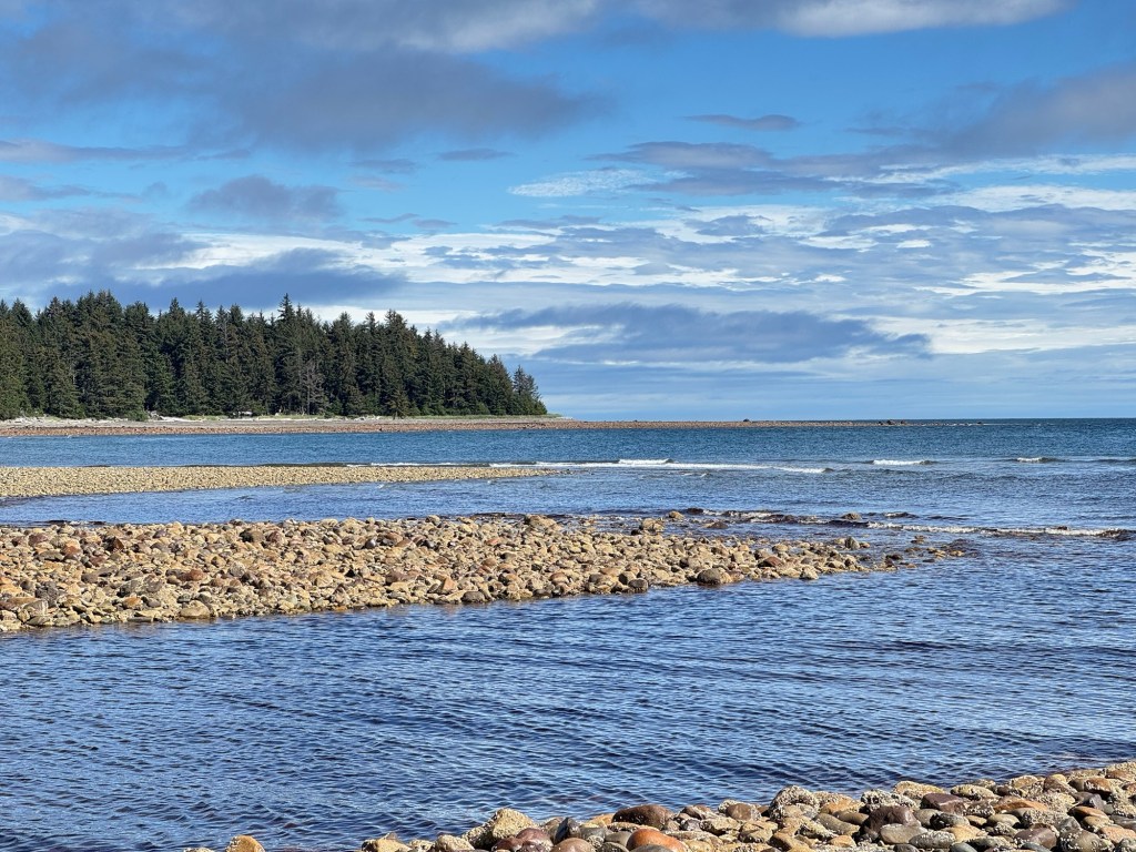 One thing that cannot be overstated about Haida Gwaii is the density of bald eagles and ravens. From where we sat on the beach there were three visible bald eagles close by, and another one we could hear but not see. Ravens matched them in number, with their distinctive croak echoing on the rocky shore. Pretty wild! Also spotted was a kingfisher, an endemic sub-species of Stellar’s Jay, chickadees, sparrows, and crows.