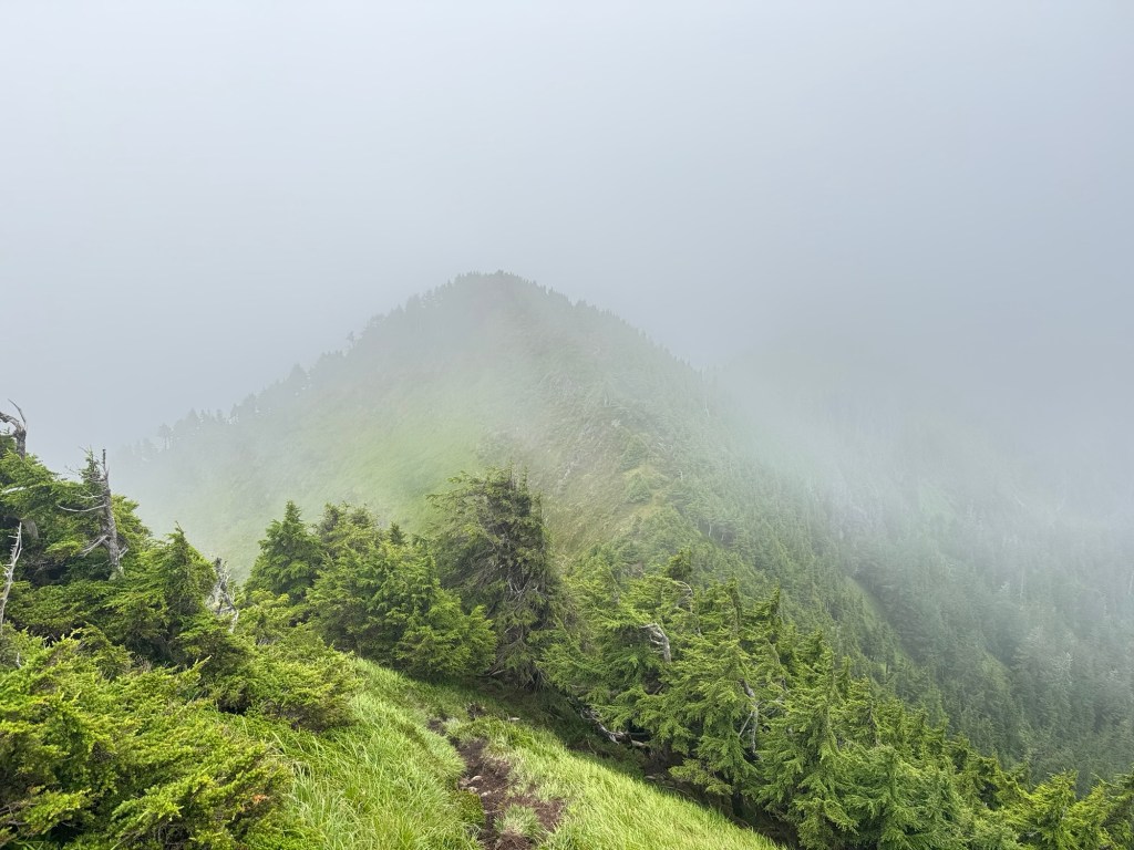Dave’s hike was coined Sleeping Beauty by the locals as the mountain looks like a woman’s face in profile. A short drive on forest service roads brought him to the trailhead. It’s a steep trail, with lots of root-y steps, and some scrambles assisted by fixed ropes. The views from the top can be incredible, but he was surrounded by cloud and strong winds at the summit.